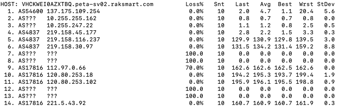 RAKsmart中国香港裸机云服务器E5 – 2620性能实测:低延迟 零丢包