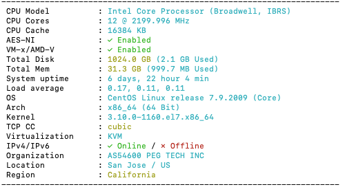 E5-2620*2(12核心/24线程) | 32G 起 | 1T SSD 起 | 大陆优化 VIP 1G | 319.00 /月 | 立即购买 |