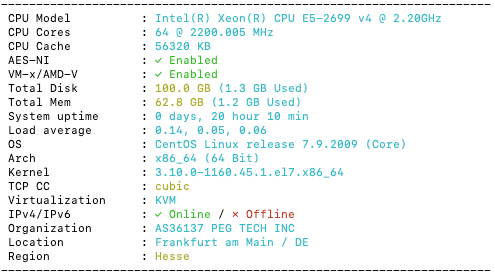 | E5-2683v4*2(32核心/64线程) | 64G 起 | 1T SSD 起 | 国际BGP 1G | 209.00 /月 | 立即购买 |