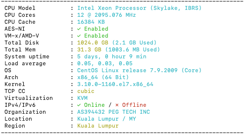 中企出海东南亚时,常面临三大核心痛点:跨境网络延迟超 100ms 导致用户体验差、带宽峰值不足引发业务卡顿、本地数据合规政策不熟悉面临运营风险。本次评测聚焦 MY – Bare – Metal Cloud 马来西亚裸机云服务器,其核心配置拉满实用价值 ——32GB DDR4 ECC 容错内存、1TB 7200 转 SATA III HDD 存储、大陆优化 100M BGP 多线带宽,预装 CentOS 7.9 – x64 稳定系统,完美适配跨境业务需求。下文将从硬件性能、网络体验、系统适配、合规安全、场景落地五大核心维度,结合实测数据展开深度解析,为选型提供精准参考。