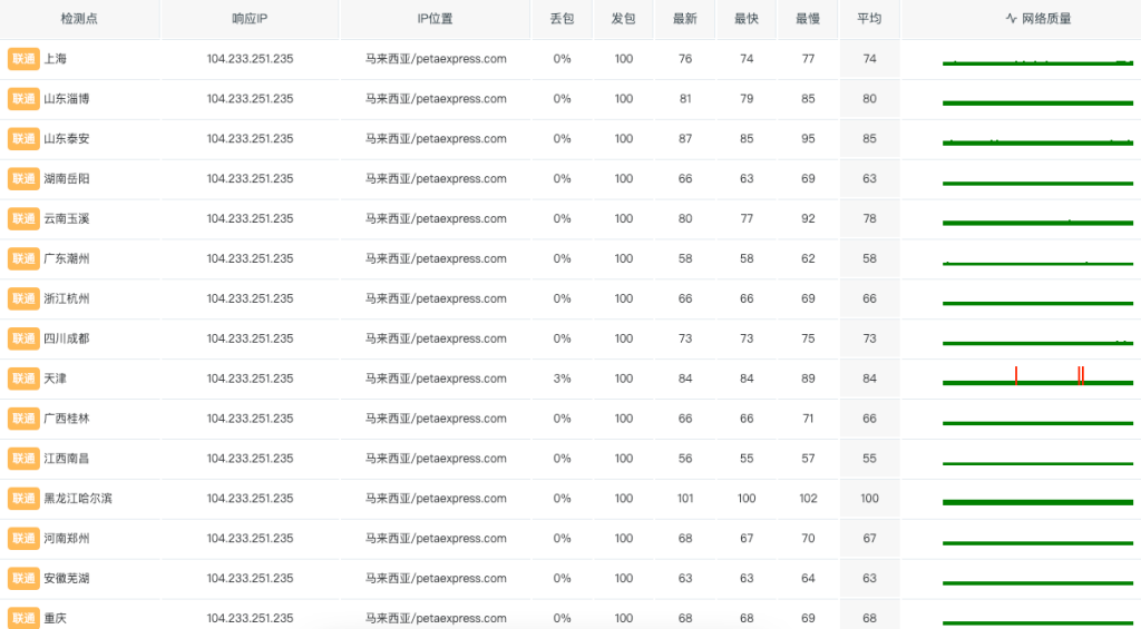 延迟实测:使用 Ping 命令与 Traceroute 工具测试,内地北上广深等核心城市访问延迟低至 45 – 60ms(北京 52ms、上海 48ms、广州 45ms、深圳 42ms),远低于普通马来西亚服务器 80 – 120ms 的延迟水平;丢包率持续为 0,网络稳定性表现优异。