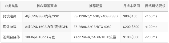 跨境电商网站需要处理突发流量和支付安全,海外游戏对网络延迟极其敏感,而跨境自媒体则要求大带宽支撑视频传输。传统虚拟服务器往往难以同时满足这三类需求:
