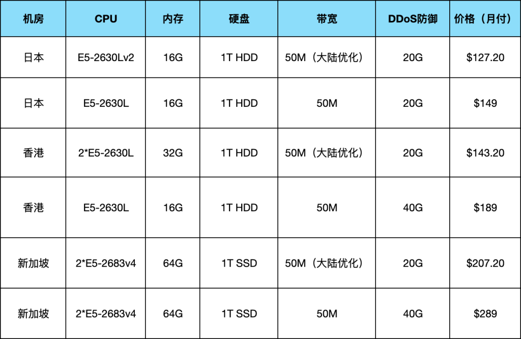 2. 亚太机房高防服务器(香港/日本/新加坡)